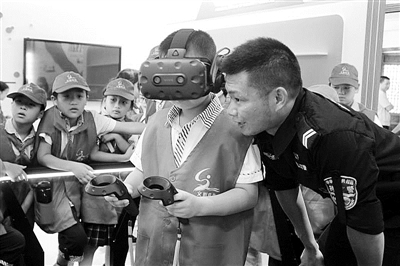 近日,临海市古城派出所组织学生到府城联勤警务驿站,带领孩子们观看防诈骗、防溺水、防盗抢小视频,体验VR虚拟灭火。活动旨在提高孩子们的安全防范意识,提升防卫能力。通讯员 冯丽娇