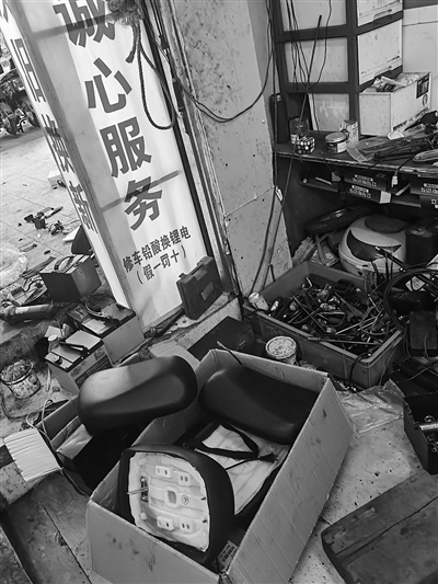 | 维修店招牌上写着“铅酸换锂电”的字样 |