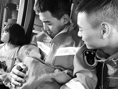 海曙区洞桥镇因江水倒灌引发大量积水,整个城镇遭受重创,牵动了不少网友的心。7月25日深夜,某小区传来警情,一名待产孕妇羊水突然破裂,即将临盆。由于救护车无法通过积水路段,宁波市消防救援支队鄞州大队首南站站长陈东彪,立刻带领救援人员前往孕妇家中。受台风影响,该小区已经停电,楼道内光线昏暗。“大家加把劲,把人送出去!”15分钟后,陈东彪和同事成功将孕妇转移到消防车上。而在高速路口的救护车上,和陈东彪同为消防指战员的妻子沈欣已早早待命。“毕竟都是女同志,方便一些。”转运孕妇的,沈欣一边安抚孕妇情绪,一边联系医院做好准备。说来也巧,夫妻俩没有通知对方,却一起圆满完成了此次救援任务。26日早上,喜讯传来,获救孕妇顺利产子,母子平安。