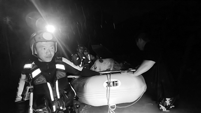 “我姐姐一家被困在白鹤桥,家里最小的孩子才3个月大,现在尿不湿没有了,你们能不能送点过去?”26日中午11时,一份特殊的警情让陆埠派出所的民警心下一沉。据报警人描述,其姐姐一家五口正被困白鹤桥自然村,其中还有两个孩子,急需物资援助。此刻,通往被困者一家的道路已被大水阻隔。民警电话联系了被困的张先生一家,才发现情况远比想象的紧急。“被大水围困前,我们在家里准备了一点物资。”然而,仅有的物资很快被用完,住所一楼的水位也足以没过一名成年人的胸口,情况岌岌可危。很快,民警搭乘皮划艇找到张先生家,顺利地将他们一家五口送到安全地点。