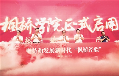 20世纪60年代初,诸暨枫桥的干部群众创造了“发动和依靠群众,坚持矛盾不上交,就地解决,实现捕人少、治安好”的“枫桥经验”。58年来,“枫桥经验”在实践中不断发展,形成了内涵丰富、特色鲜明的新时代“枫桥经验”,成为全国政法综治战线和基层治理领域的一面旗帜。2018年,在毛泽东同志批示学习推广“枫桥经验”55周年暨习近平总书记指示坚持发展“枫桥经验”15周年之际,枫桥学院在诸暨枫桥镇动工开建,并于今年7月正式投入使用。