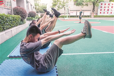 休息间隙,几名新兵和我聊了起来。来自贵州的曾建友2001年出生,当兵是他的梦想。2017年第一次入伍失败后,他就报考了警校,之后在公安、特警队和派出所工作过,“我觉得我就是当兵的料,看到别人过建军节,特别羡慕!”经过努力,今年3月曾建友成功入伍。“好不容易进入军营了,再苦再累都没关系!”他一直严格要求自己,是同批新兵中训练时被纠正最少的。