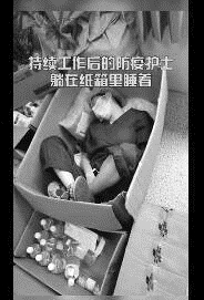 防疫护士缩在纸箱中睡着,蜷缩睡姿让人心疼