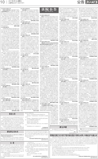 更正:本报2021年8月2日第10版法院公告栏中,余姚市人民法院(2021)浙0281民初5472号,开庭时间应为“2021年10月19日”,特此更正。