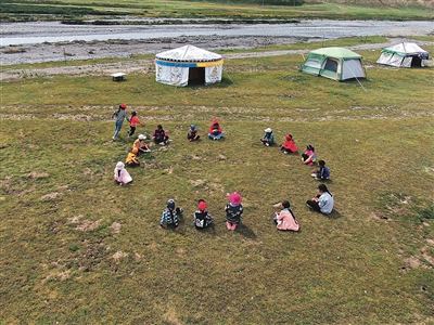 牧民转场到夏季草场之后,居住分散,放假的孩子们往往无人看管。为解决这个问题,玛沁县从2018年起开办“育苗加油站”,聘请暑假回乡的大学生,组织青少年开展形式多样、内容丰富的活动。如今,“育苗加油站”已在玛沁县35个行政村实现全部覆盖。