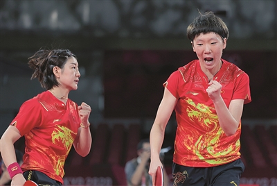 8月4日,中国队组合陈梦/王曼昱(右)在比赛中。