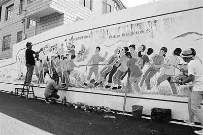 8月8日,建德市新安江街道新蓬村,画师们忙着创作“全民健身”墙体彩绘,吸引了不少村民驻足观看。新蓬村通过“文化墙”建设,让村民在浓厚的文化氛围中增强美丽乡村建设的信心,助力乡村振兴。