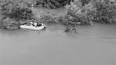 该水域江水非常湍急,3人落水后死死抓住江中的树木,这才没有被急流冲走。消防员到达现场后,利用皮划艇、绳索等工具展开救援,成功将被困人员营救回岸边。
