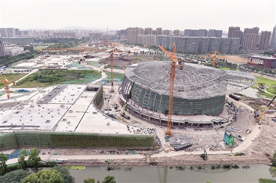 从2020年8月10日到2021年8月10日,杭州城北的大运河亚运公园彻底换了新颜。这座占地700多亩的大型城市体育公园已进入细节完善阶段,全面竣工指日可待。2022年杭州亚运会乒乓球、霹雳舞与曲棍球将在这里比赛。潘海松 摄