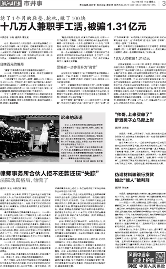 另一名受骗者詹某也说,公司招聘广告里说的手工活很容易,而实际收到的半成品非常难绣,自己绣了1个月都绣不完,投入和回报明显不成正比。不过,由于被骗金额不大,詹某没有报警。