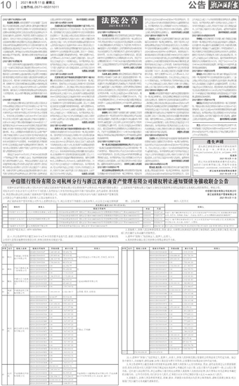 中信银行股份有限公司杭州分行与浙江省浙商资产管理有限公司债权转让通知暨债务催收联合公告