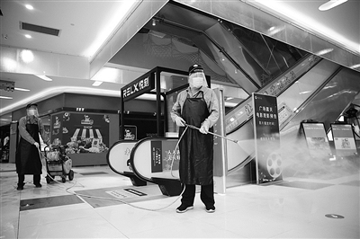 8月11日,德清县武康街道辰东邻里中心商场里,工作人员正在进行消杀工作。武康街道实行常态化疫情防控,定期对辖区内的商场、农贸市场、小区公共区域等人流密集场所开展消杀防疫工作。通讯员 王正 王棋铭 摄