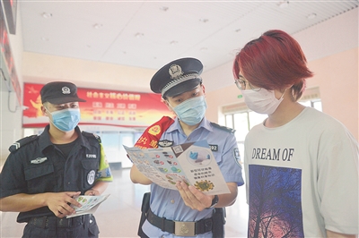 近日,杭州铁路公安处台州站派出所三门警务区民警提醒旅客做好防疫。针对近期疫情防控复杂严峻形势,该所组织民警加强巡查和防疫宣传,确保旅客保持距离上下车。通讯员 林利军