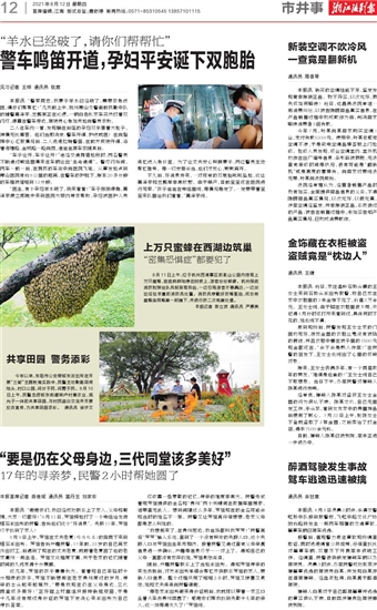 本报讯 “谢谢你们,我已经成功联系上了家人,父母和哥嫂,大家一切都好!”8月11日,芳姐特地打了一个电话给龙游塔石派出所的民警,告诉他们这个“好消息”。失联17年,芳姐终于找到了家人!