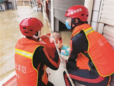 8月12日,在随州市何店镇,救援人员转移被困人员。