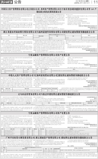 中柏九元资产管理有限公司与【温州富地置业有限公司】债权转让通知暨债务催收联合公告