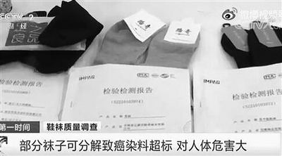 央视曝光部分袜子致癌染料超标
