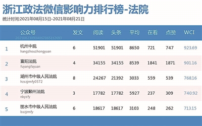 本期法院榜,老将“杭州中院”本月第四次夺得“双料冠军”,其发布的热文《9月1日起,夫妻过户、子女继承房产均免征契税!》受到广泛关注。