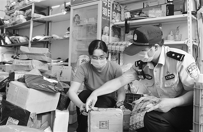 近日,三门县海游派出所民警来到辖区快递企业,指导员工在快递外包装上贴上反诈宣传标语。连日来,海游派出所以“我为群众办实事”活动为契机,开展反诈宣传,帮助群众切实提高反诈意识。