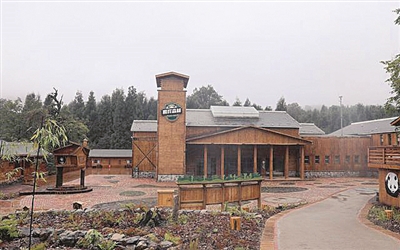 记者注意到,营地里有不同类型的木屋,有的背靠森林,有的靠近小溪,有的环抱古树。青山绿水间还有一个熊猫餐厅,用餐者在欣赏自然美景的同时,还能听到潺潺流水声和清脆鸟鸣声……