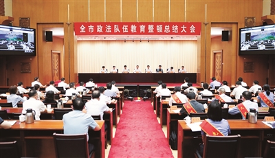本报讯 近日,湖州市政法队伍教育整顿总结大会召开,深入学习贯彻习近平总书记“七一”重要讲话精神和关于政法队伍建设的重要指示精神,认真落实中央第七督导组、省委第四驻点指导组反馈意见,全面总结成绩经验,着力推动各级各部门持续抓好政法队伍建设。