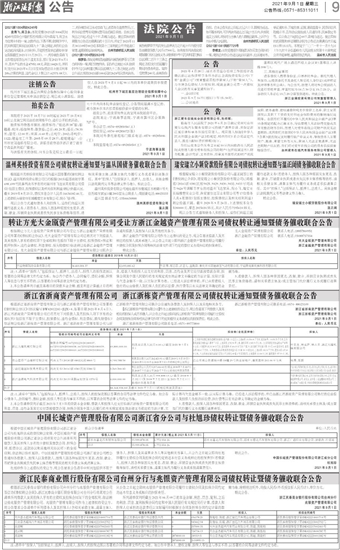 浙江省浙商资产管理有限公司 浙江浙栋资产管理有限公司债权转让通知暨债务催收联合公告