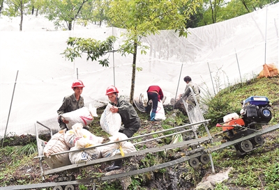 在临安岛石镇大山川村山核桃规模化生态经营示范园区,山核桃采收搭上了“小火车”,单趟最多能负载200公斤,从山顶运到山脚只需十几分钟。“小火车”学名叫“山地单轨运输机”,园区后勤负责人康晓光向记者介绍,它能在狭窄空间里穿行,并可在轨道上设立停靠点,“轨道铺设不必筑地基,因此不会破坏林地”。