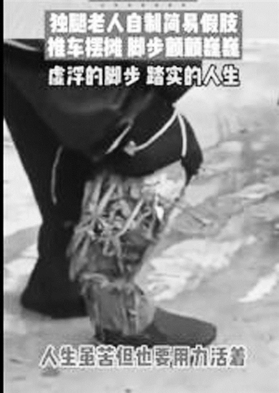 四川乐山,一位大爷佝偻着身子,推着一辆载满竹编制品的小车,而他的右腿却绑着一副自制的假肢……最近两天,这位被称为“别样假肢”的大爷在网上走红。不少网友感叹,其自力更生的举动让人心疼,我们还有什么理由不努力!目前,当地已确定将于下周为其免费安装假肢。