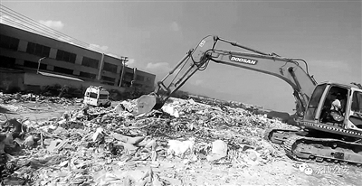 回收站里的垃圾堆积成山,天气炎热、臭味难忍。民警调用了一台挖掘机,将回收站里堆积的垃圾全部翻查了一天,也未找到被盗物品。