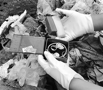 但民警并未放弃,通过分析,推断李某极有可能将被盗物品藏匿在垃圾场较隐蔽的地方,查找重心再次回到垃圾场。民警几乎翻遍了每一块石头、每一袋垃圾。终于在13日下午,当民警破开垃圾场内一块巨大的石板后,在破碎的石板下找到了一个首饰盒和一盒开锁工具。首饰盒内正是陈女士丢失的金器首饰,而开锁工具也正是李某的作案工具。