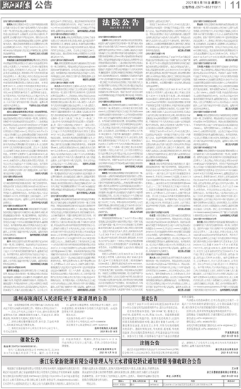 浙江乐豪新能源有限公司管理人与王水君债权转让通知暨债务催收联合公告