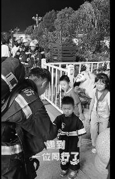 撞衫小男孩向消防员敬礼