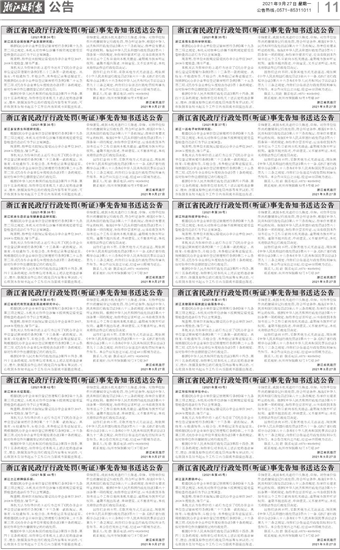 浙江省民政厅行政处罚(听证)事先告知书送达公告