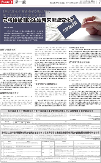 9月29日下午,省十三届人大常委会第三十一次会议审议通过《浙江省电子商务条例》(以下简称《条例》),《条例》将于明年3月1日起正式实施。这部从2017年第一次提交省人大常委会会议审议,到2021年才正式通过的法规,将会给我们的生活带来哪些变化?记者结合以往案例,进行了梳理。