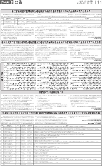 中国长城资产管理股份有限公司浙江省分公司对宁波保税区银亿金属材料有限公司等9户企业债权资产处置公告