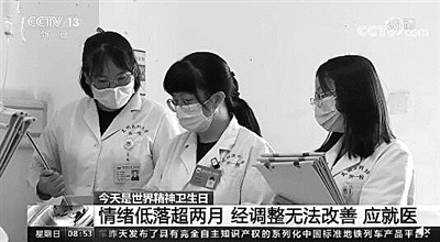 10月10日是世界精神卫生日,北京大学第六医院社会精神病学与行为医学研究室主任黄悦勤等专家介绍,每个人表达焦虑、抑郁的信号不同:有人情绪低落,兴趣减退;有人有睡眠障碍,消化道不适,腹泻便秘;还有人会出现不明原因的疼痛。情绪低落持续两个月以上且无法改善,应及早就医,不要等症状发展到非常严重的阶段才引起重视。