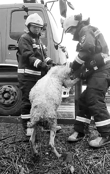 消防员上演高速“抓羊大战”