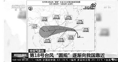 今年第18号台风“圆规”的中心,10月10日上午8点位于菲律宾马尼拉偏北方向约890公里处。“圆规”将以每小时25公里左右的速度向西北方向移动,强度缓慢增强。预计,“圆规”将于11日夜间进入南海东北部,然后向粤西到海南岛东部一带沿海靠近。受其影响,浙江东部、台湾岛等地部分地区或有中到大雨。