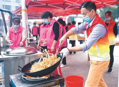 10月12日,苏溪镇六都村的志愿者们在六都村居家养老服务中心烹饪“孝心十碗菜”。