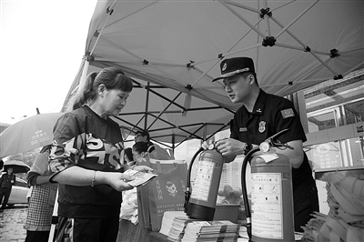 10月13日是第32个国际减灾日,湖州市南浔区消防救援大队积极开展相关宣传活动,向大家普及灭火器的使用方法和家庭用气用电安全知识。通讯员 周滟 摄