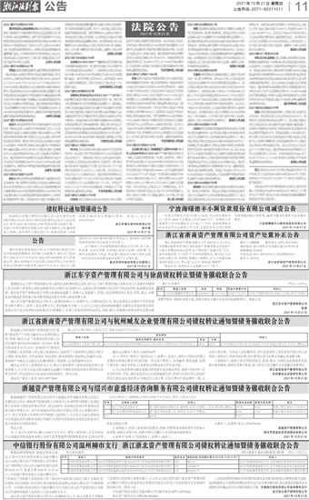 更正:本报2021年8月31日第10版法院公告栏中,杭州市滨江区人民法院(2021)浙0108民初3443号,开庭时间和地点应为“2021年11月25日上午10时在本院第九法庭”,特此更正。