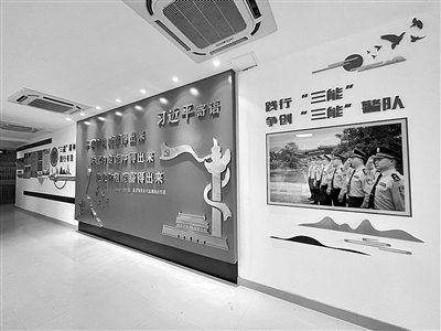 日前,泰顺县公安局交警大队五中队和泗溪派出所利用“所队合一”优势创建“三能”警营,在营房内建设了一面“三能”主题墙,时刻提醒每一位民警、辅警要做合格的“三能”警务工作人员。