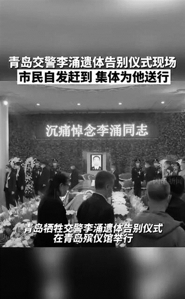 10月31日,山东青岛交警李涌告别仪式在青岛殡仪馆举行。告别仪式现场,青岛市民自发前来送行。纵有万般不舍,只恨世上没有如果;虽有千言万语,最后也只有悲伤地道一句:英雄,一路走好!李涌,我们“涌”远想你!