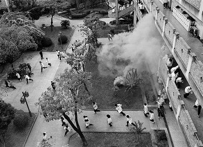 两盘水带连接操、原地穿戴消防战斗服、干粉灭火器灭油桶火等项目的消防技能比武和师生应急演练,大大提高了师生们的消防安全意识。本报记者 陈立波 通讯员 林骏 摄
