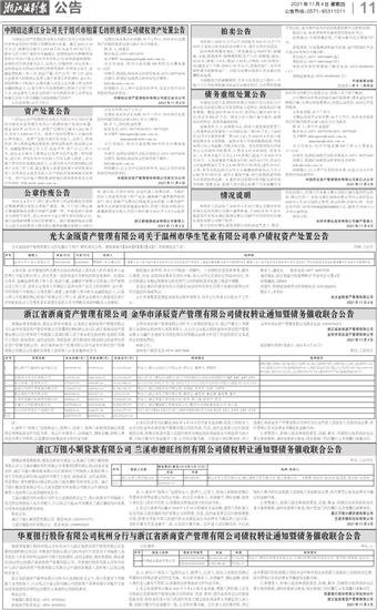 华夏银行股份有限公司杭州分行与浙江省浙商资产管理有限公司债权转让通知暨债务催收联合公告