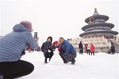 | 11月7日,游人在天坛公园游玩赏雪。 新华社 鞠焕宗 摄 |