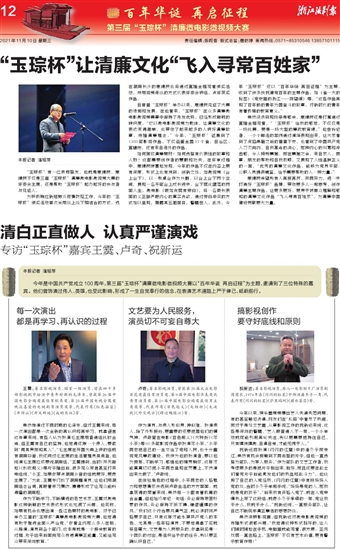 今年是中国共产党成立100周年,第三届“玉琮杯”清廉微电影微视频大赛以“百年华诞 再启征程”为主题,邀请到了三位特殊的嘉宾。他们曾饰演过伟人、英雄,也受此影响,形成了一生自觉奉行的信念,在表演艺术道路上严于律己、砥砺前行。