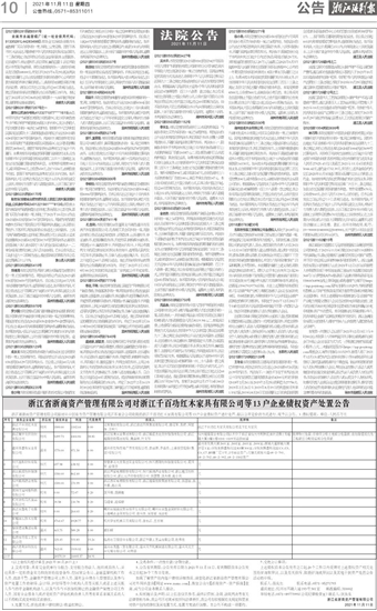 浙江省浙商资产管理有限公司对浙江千百功红木家具有限公司等13户企业债权资产处置公告