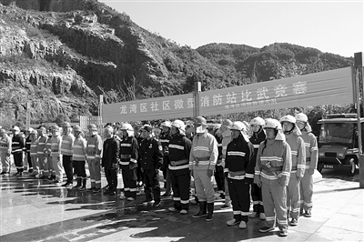 近日,温州市龙湾区消防救援大队举行首届社区微型消防站比武竞赛,全区25个社区微型消防站围绕原地规范着装、手抬泵连接分水器出水操两个项目展开角逐。比赛检验了各微型消防站的业务技能和实战水平。