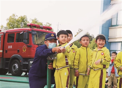 近日,一辆消防车开进长兴县画溪街道包桥中心幼儿园。消防员通过讲解通俗易懂的自救常识,让小朋友们认识到消防知识的重要性。
